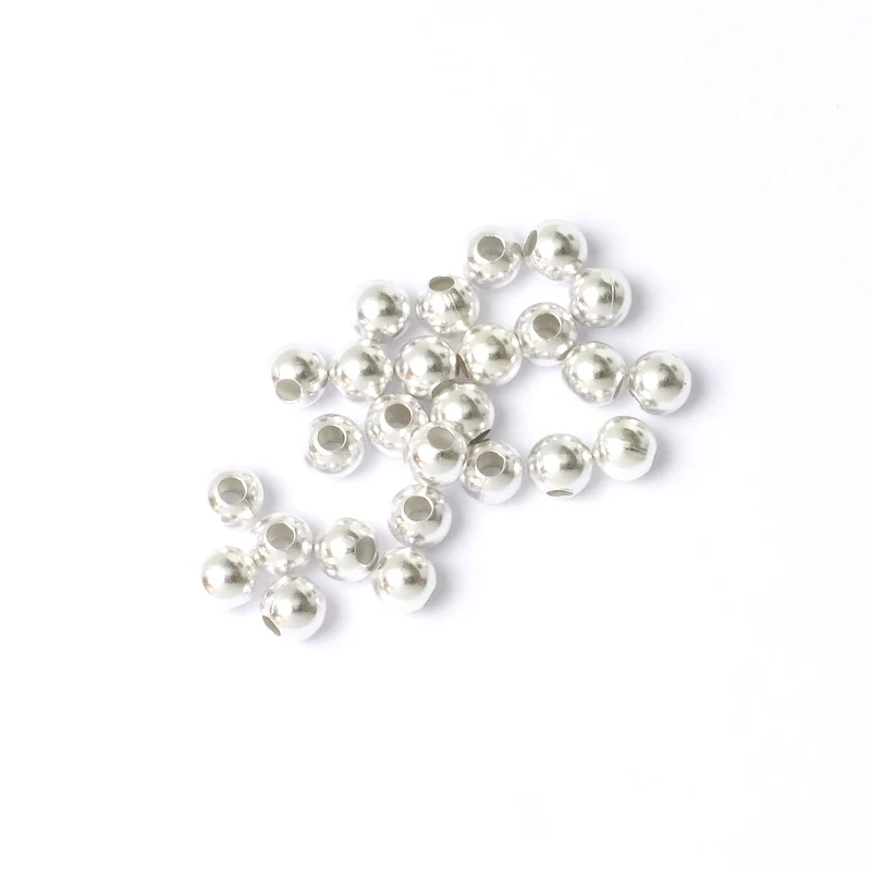 Lot de 10 perles rondes 4mm en Laiton Argenté 925 Premium