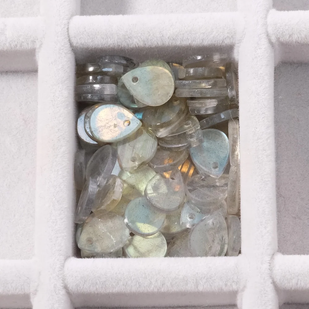 Pendentifs sequin goutte 8x6mm en pierre naturelle Labradorite, vendu par lot de 2.