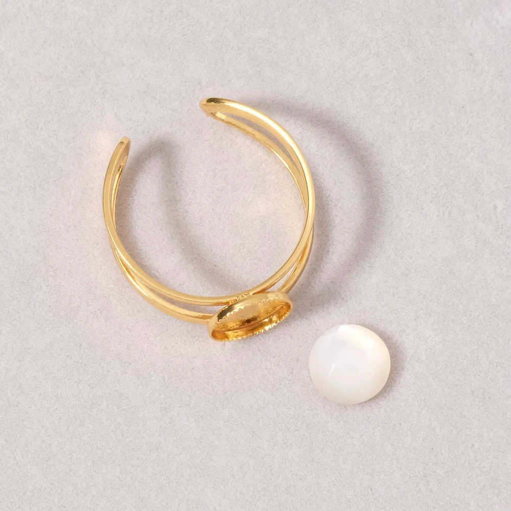 Bague ajustable double pour Cabochon 8mm Plaquée Or 16K 3 microns.
