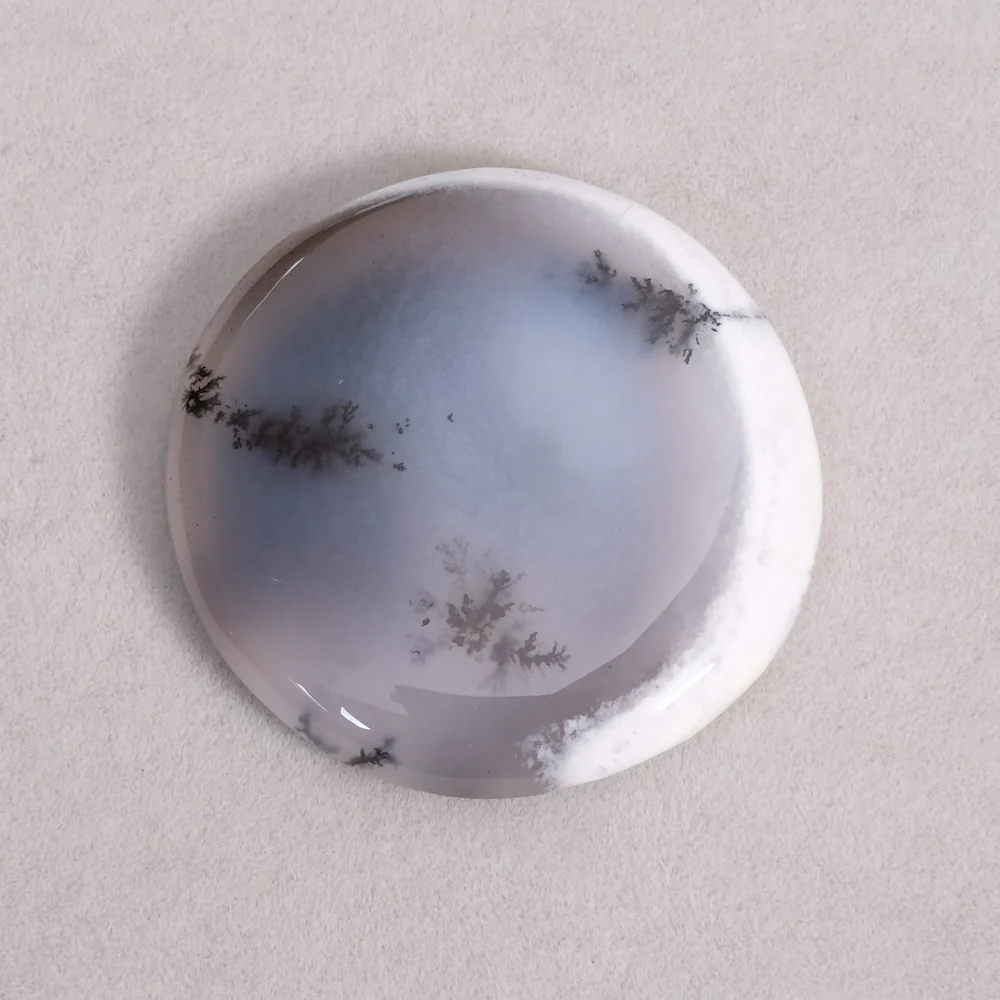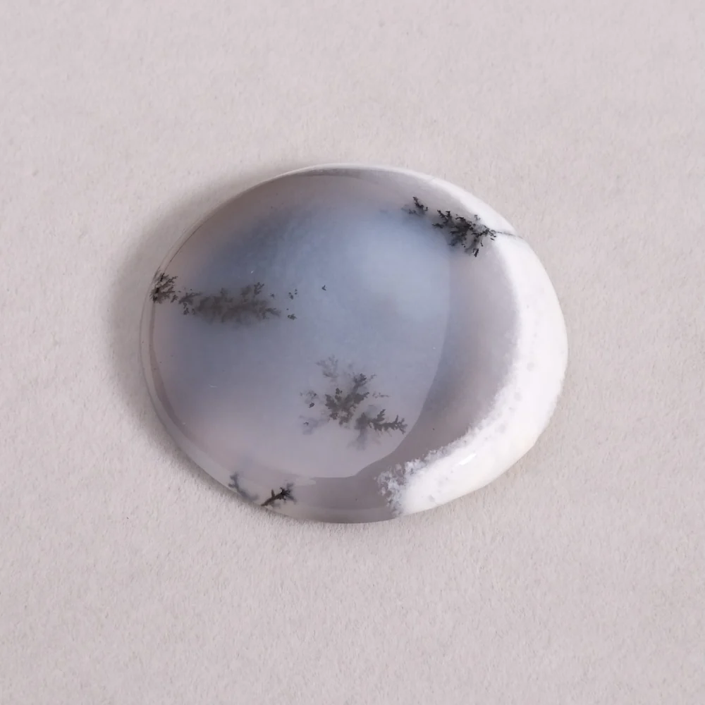 Chaque cabochon en agate dendritique présente des motifs uniques évoquant des branches, des fougères ou des paysages naturels. Ces dessins délicats sont formés naturellement par des inclusions d’oxydes de manganèse au cœur de la pierre, rendant chaque cabochon totalement unique.